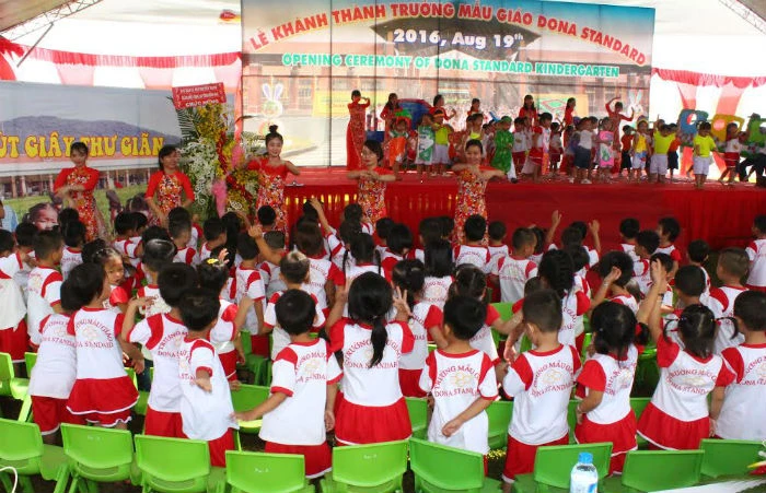 Trường được xây dựng trên khuôn viên 2,4 ha dành cho hơn 1.000 con công nhân Công ty Dona Standard tại KCN Xuân Lộc. Trường mẫu giáo này được xây dựng không vì mục đích lợi nhuận, do đó trường không thu học phí mà do công ty hỗ trợ, chỉ có khoản ăn uống là thỏa thuận với phụ huynh đóng góp 430.000 đồng/tháng để các cháu được ăn bữa sáng, bữa trưa, bữa chiều, bữa lỡ…