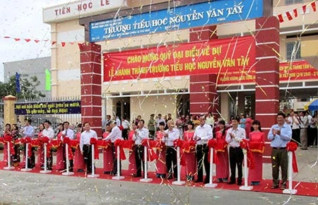 Cắt băng khánh thành Trường Tiểu học Nguyễn Văn Tây. Ảnh: P.TĨNH
