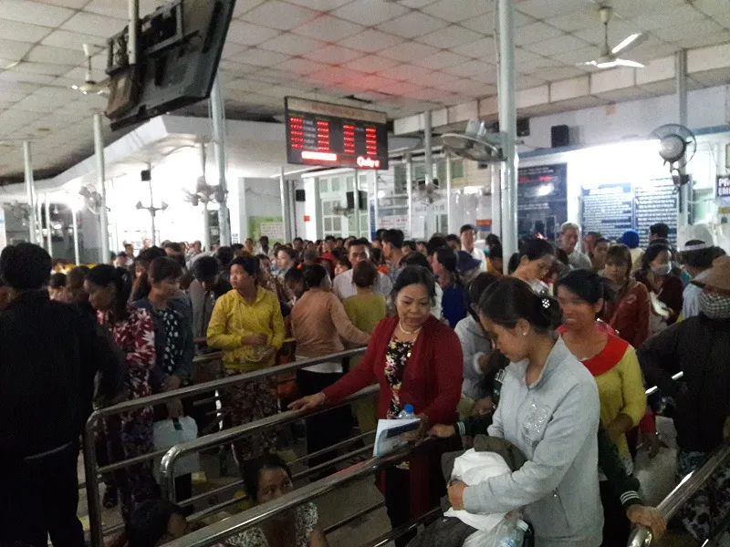 Bệnh nhân xếp hàng đợi khám bệnh từ 4 giờ sáng tại BV Ung Bướu TP.HCM ẢNH: HÀ PHƯỢNG