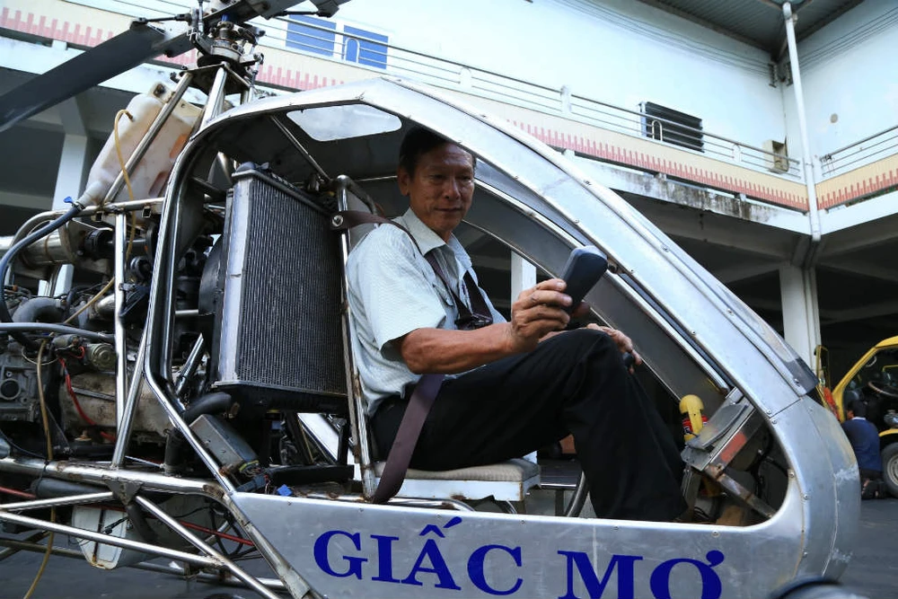 Kỹ sư Hiển trên chiếc trực thăng tự chế "Giấc mơ".