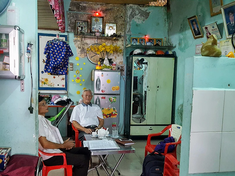 Cuộc sống chật chội tại căn hộ của một gia đình chính sách ở chung cư Trúc Giang. Ảnh: ĐÀO TRANG