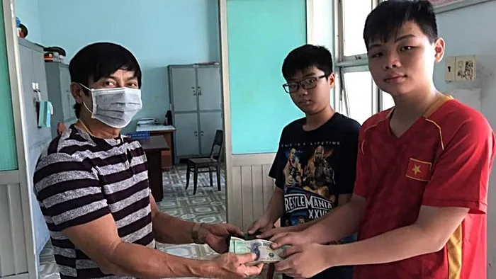 Trước đó, sáng 18-3, hai học sinh Nguyễn Đăng Khoa (lớp 8A7, Trường THCS Nguyễn Trãi, Phan Thiết) và Trần Hữu Trọng (lớp 8A8, Trường THCS Nguyễn Du, Phan Thiết) đều ngụ phường Lạc Đạo, TP Phan Thiết nhặt được chiếc bóp, trong đó có hơn 30 triệu đồng cùng nhiều giấy tờ quan trọng.