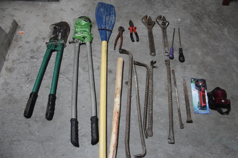Dụng cụ để gây án của nhóm trộm tiệm vàng miền Tây.