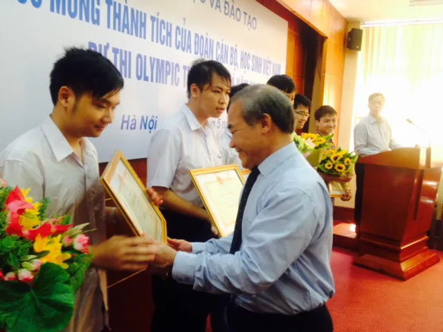 Bộ GD&ĐT đã trao bằng khen cho ba học sinh đoạt huy chương vàng là các em Nguyễn Tiến Trung Kiên, Nguyễn Việt Dũng (lớp 12) và Phan Đức Nhật Minh (lớp 11).
