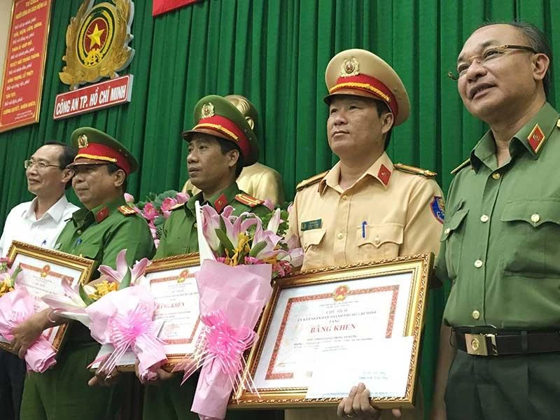 Chiều 28-3, ông Lê Thanh Liêm, Phó Chủ tịch Thường trực UBND TP.HCM, đến Công an TP trao thưởng đột xuất cho lực lượng công an đã bắt giữ vụ vận chuyển 895 bánh heroin tại ngã tư An Sương (huyện Hóc Môn) vào tối 27-3.