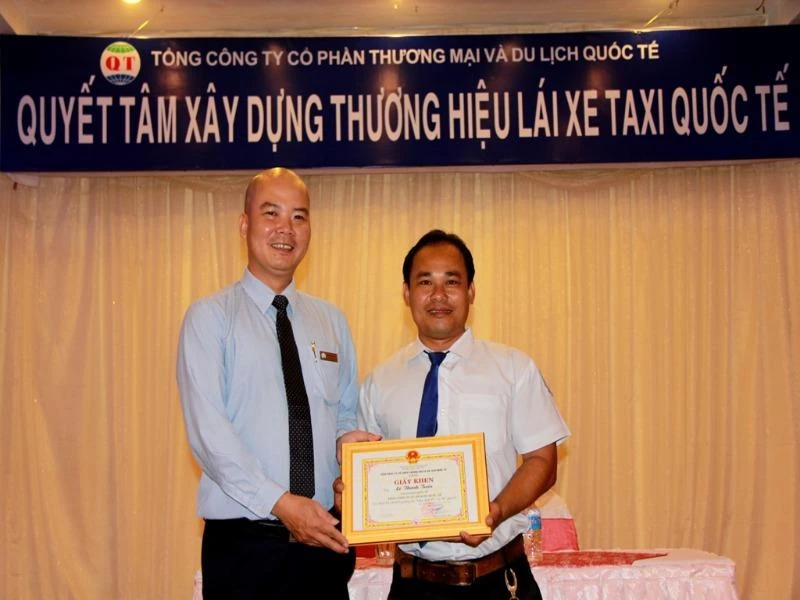 Sáng 9-11, lãnh đạo Công ty CPTM-DL Quốc Tế Nha Trang đã tổ chức họp mặt hàng chục tài xế taxi Quốc Tế mới được nhận vào làm việc, kết hợp tặng giấy khen và thưởng 1 triệu đồng cho một tài xế vừa trả lại tài sản có giá trị lớn cho khách để quên trên xe.