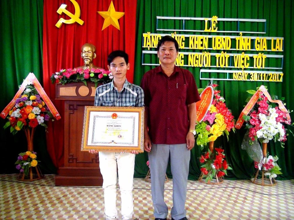 Chủ tịch UBND tỉnh Gia Lai vừa ký quyết định khen thưởng em Nguyễn Văn Kiên (trú thị trấn Phú Túc) vì đã dũng cảm cứu 5 học sinh thoát khỏi đuối nước.