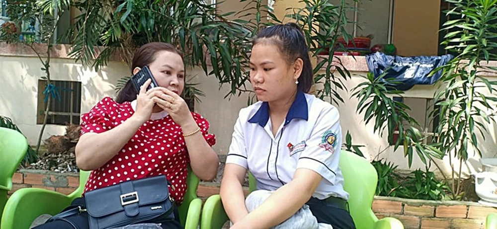 Một nữ giáo viên và học sinh vừa hiến máu cứu em Hải xong