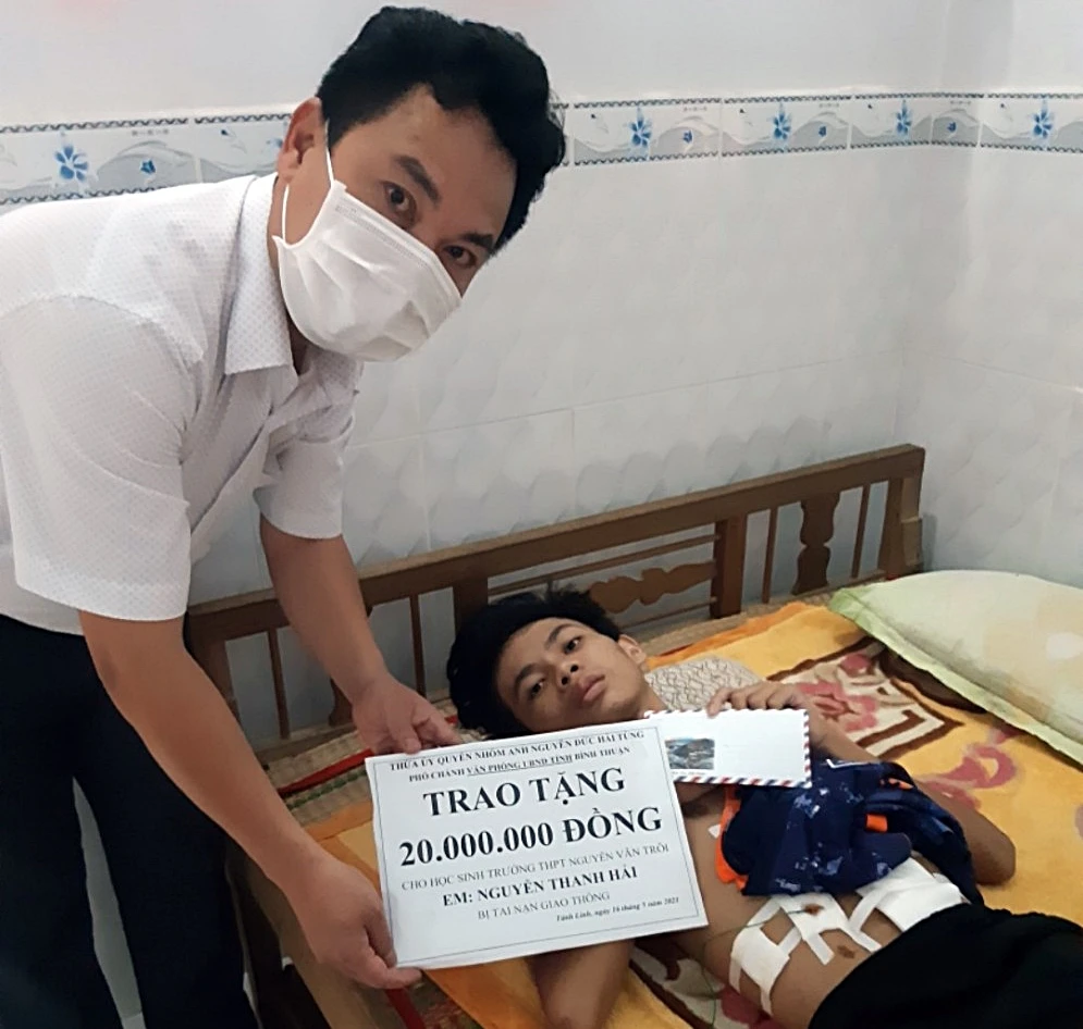Do hoàn cảnh em Hải khó khăn, nên sau khi em gặp nạn, ngoài việc thầy cô, bạn bè hợp sức hiến máu còn có rất nhiều tổ chức, cá nhân quyên góp hỗ trợ viện phí cho em.