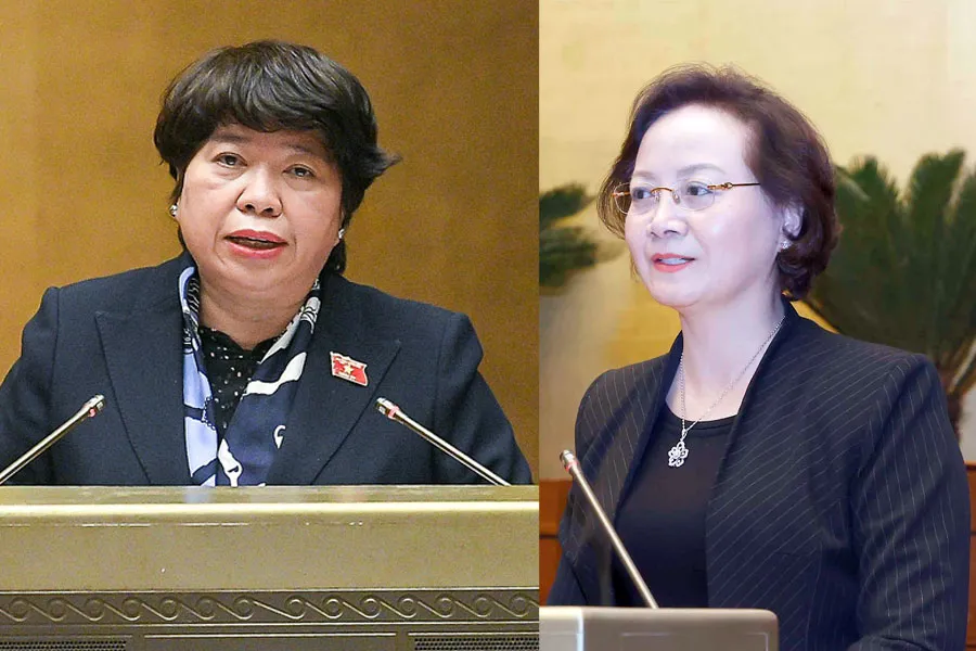 Chủ nhiệm Ủy ban Xã hội Nguyễn Thúy Anh (trái), trình bày báo cáo một số vấn đề về dự thảo Luật và Bộ trưởng Bộ Nội vụ Phạm Thị Thanh Trà giải trình, tiếp thu các ý kiến đóng góp tại hội nghị. Ảnh: quochoi.vn