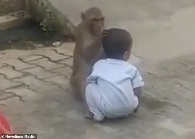 Khi một người đi đường nhìn thấy cả hai đang ngồi bên lề đường, bà tiến đến định cứu cậu bé nhưng con khỉ đã ôm lấy đứa trẻ và từ chối trả lại, tờ Daily Mail đưa tin.