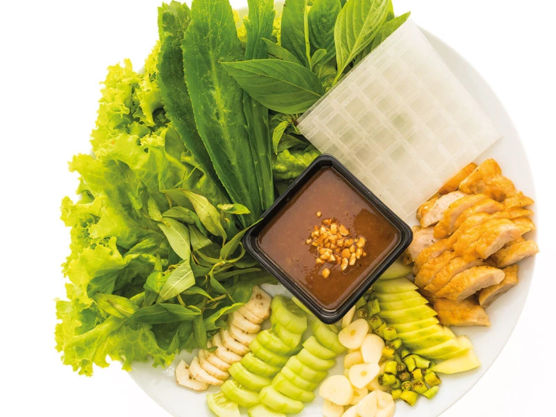 Món quen thuộc trên mâm cơm ngày tết miền Nam không thể không nhắc đến món bánh tráng cuốn. Bánh tráng mỏng mà dẻo, được cuốn với thịt, lạp xưởng hoặc cá hấp, cá nướng kèm với các loại rau thơm, thêm mấy cọng bún tươi, chấm nước mắm chua ngọt. Một món đặc sản của miền Nam không lẫn vào đâu được.