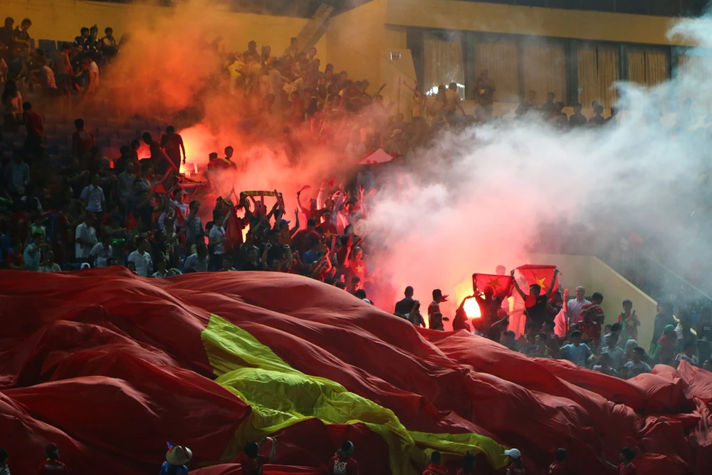Khán giả Việt Nam cất công sang Campuchia cổ vũ đội nhà vui với chiến thắng nhưng không hài lòng về lối chơi và bản sắc đội tuyển bị đánh mất. Ảnh: HUY PHẠM - HỮU THÀNH