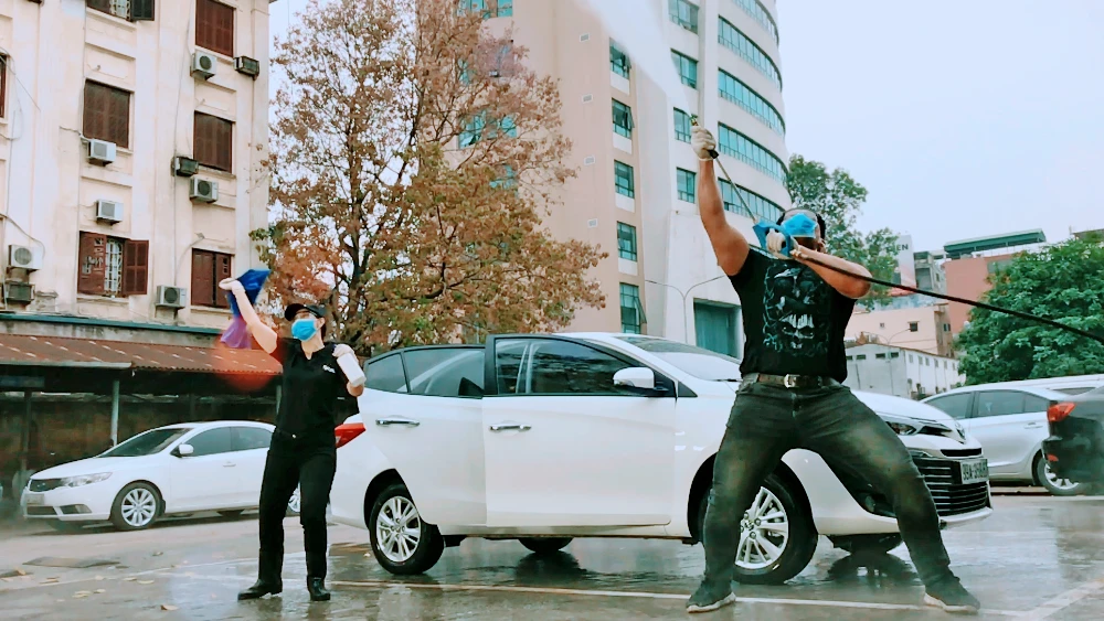 Hình ảnh trong MV MV “Rửa xe hay hay”.