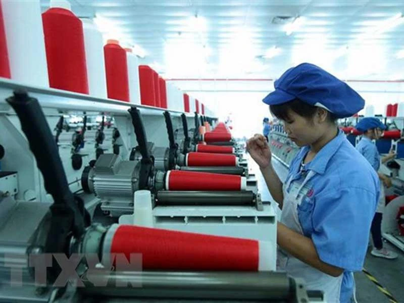 Dây chuyền sản xuất sợi tại Công ty TNHH Dệt nhuộm Jasan Việt Nam, vốn đầu tư của Trung Quốc tại Khu công nghiệp Phố nối B (Hưng Yên). Ảnh: TTXVN