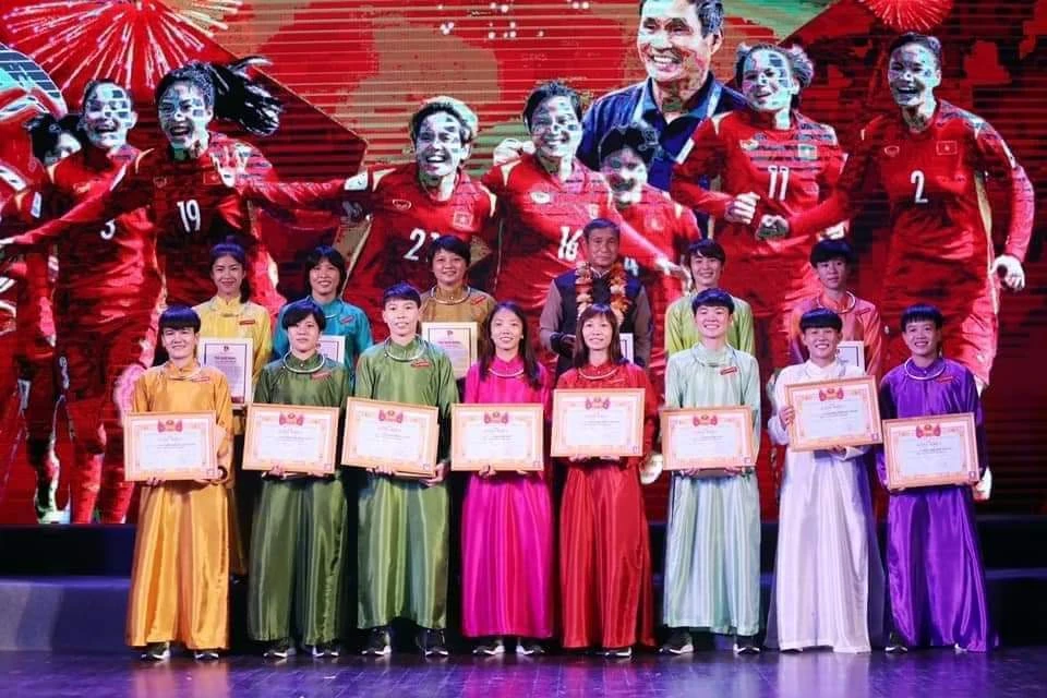 Các lãnh đạo cũng trao quà cho các thành viên đội tuyển bóng đá nữ Việt Nam. Riêng Huỳnh Như, Trần Thị Kim Thanh, Trần Thị Phương Thảo, Trần Thị Thu, Trần Thị Thùy Trang, Nguyễn Thị Tuyết Ngân, Nguyễn Thị Bích Thùy, Nguyễn Thị Mỹ Anh được Thành đoàn TP.HCM trao tặng Bằng khen Thành Đoàn, huy hiệu "Tôi yêu Tổ quốc tôi" của Hội Liên hiệp Thanh Niên Việt Nam TP.HCM.