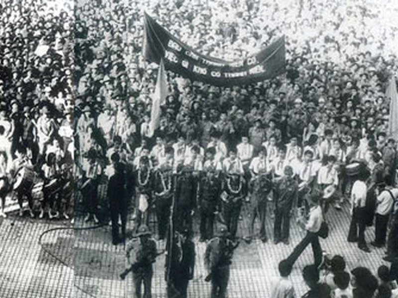 Lễ đón Thanh niên xung phong TP.HCM hoàn thành nhiệm vụ ở biên giới Tây Nam trở về. Ảnh: TƯ LIỆU