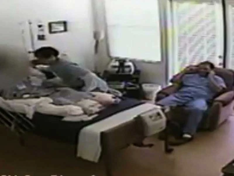 Một điều dưỡng Philippines có hành vi bất chính với bệnh nhân đột quỵ 98 tuổi. Ảnh chụp từ video giám sát