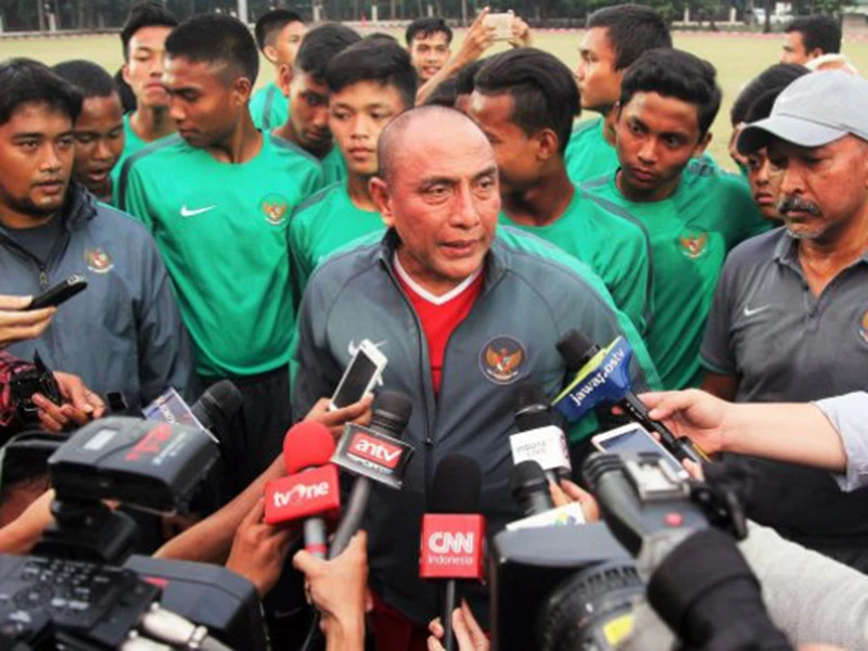 Tướng Edy trả lời phỏng vấn báo chí với tư cách là chủ tịch LĐBĐ Indonesia. Ảnh: tribunnews.com