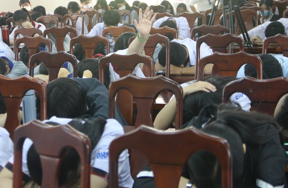 Các học sinh làm những bài kiểm tra tâm lý của các chuyên gia tâm lý.