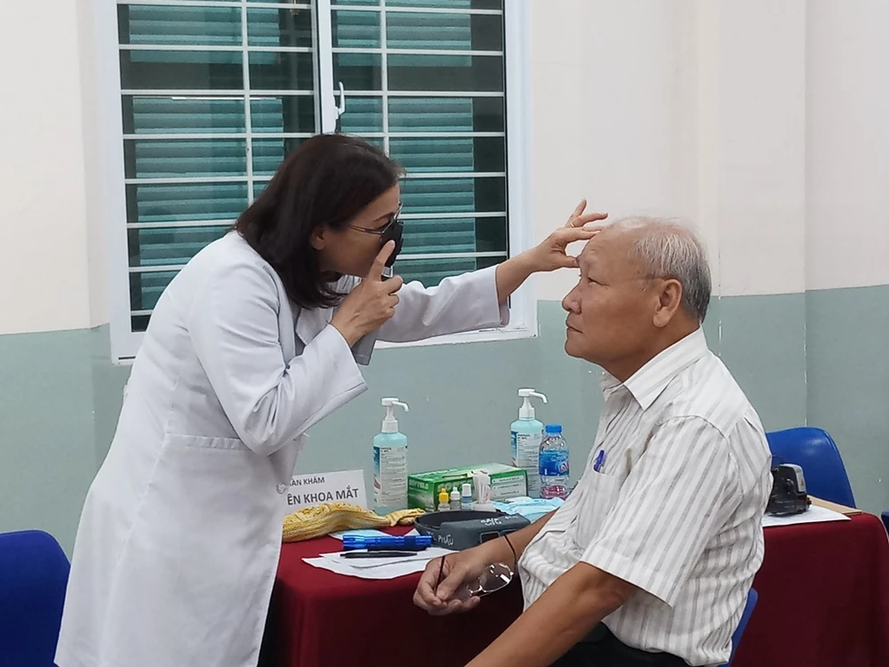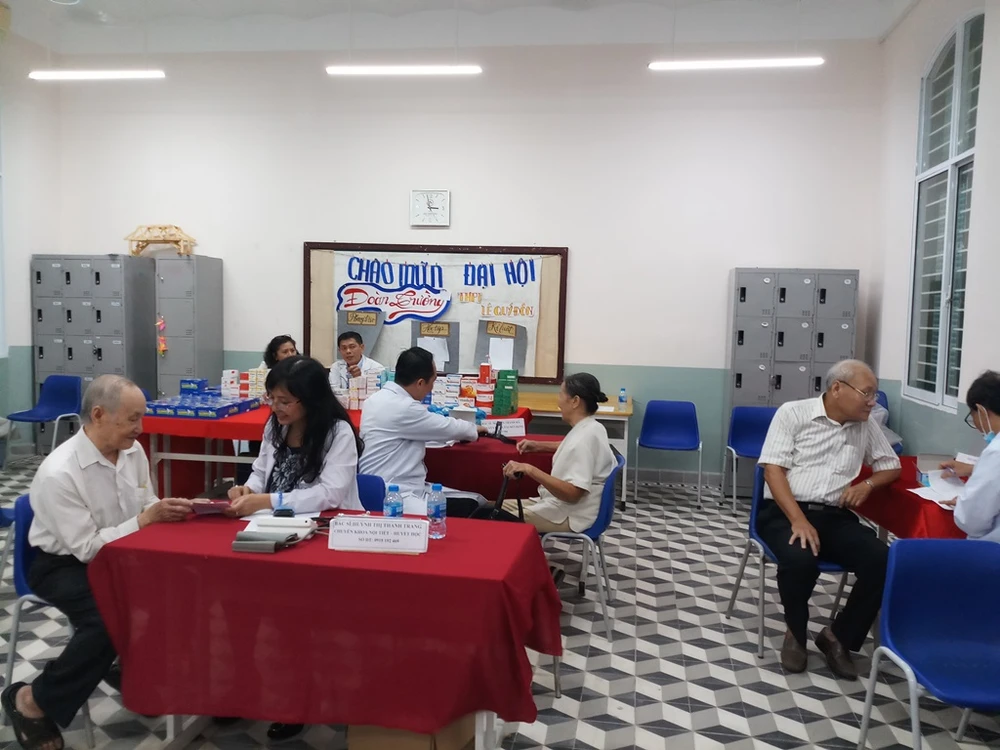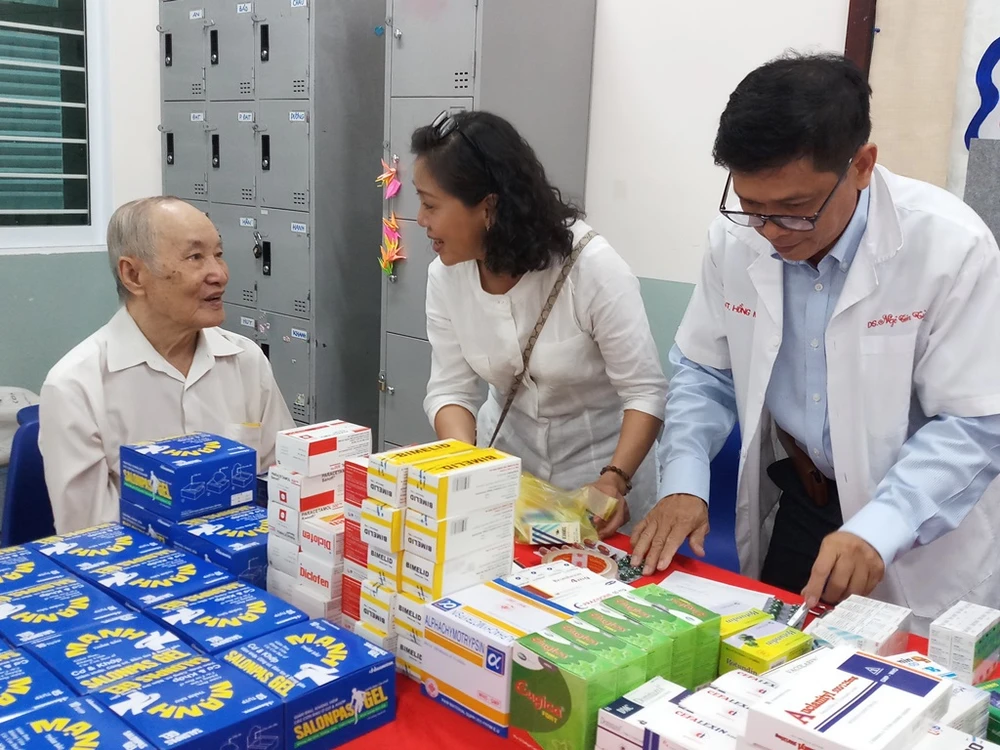 Mỗi thầy cô đến đây sẽ được tư vấn sức khỏe với những bệnh thông thường của người lớn tuổi như răng miệng, tai mũi họng, khớp hay nội tiết. Sau đó, các nhà giáo sẽ được phát thuốc theo đơn mà các bác sĩ đã ghi.