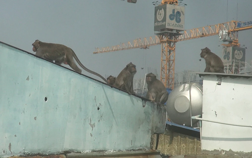 Con khỉ di chuyển trên mái nhà chừng 10 mét thì ngấm thuốc và được đưa về trạm cứu hộ động vật hoang dã Củ Chi để hồi sức, chuẩn bị thả về với tự nhiên.
