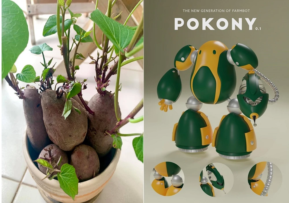 Lê Thảo Vi lấy cảm hứng từ hình ảnh những củ khoai tròn lẳn, xếp lớp với nhau trong chậu khoai của mẹ. Đây là một con robot chăm sóc cây trồng, với khả năng tưới nước và đuổi côn trùng. Tên của robot là Pokony. Theo Thảo Vi, Po là từ "Potato" trong tiếng anh (có nghĩa là khoai), Kony là từ Folyekony trong tiếng Hungary, nghĩa là chất lỏng.