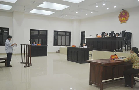 Tại TAND TP Đà Nẵng, luật sư ngồi ngang hàng với kiểm sát viên Ảnh: DH