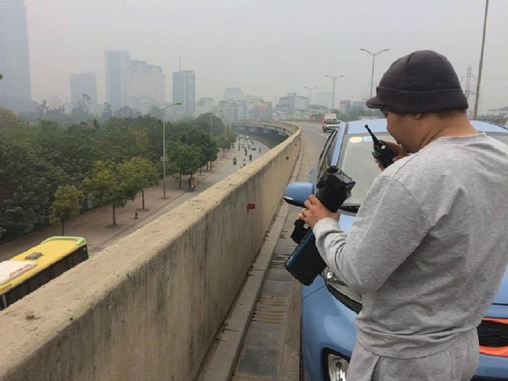 CSGT Hà Nội hóa trang bắn tốc độ xe vi phạm. Ảnh: TUYẾN PHAN