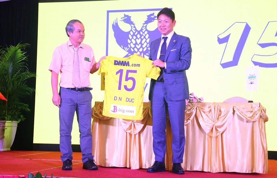 Bầu Đức nhận chiếc áo danh dự từ CEO Takayuki.