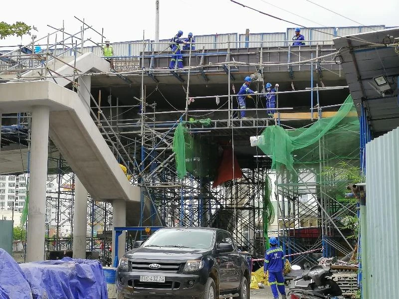 Một công nhân cho biết công trình đang nới rộng hành lang đi bộ. Dự kiến cầu Chữ Y sẽ đưa vào khai thác vào cuối năm 2019.