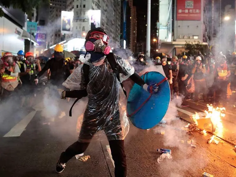 Hong Kong đang chứng kiến một trong những thời điểm hỗn loạn nhất trong 14 tuần vừa qua của phong trào chống chính phủ. Người biểu tình đốt lửa, ném bom xăng vào cảnh sát chống bạo động, trong khi cảnh sát cũng bắn trả bằng đạn hơi cay, đạn bọt biển và sử dụng dùi cui.
