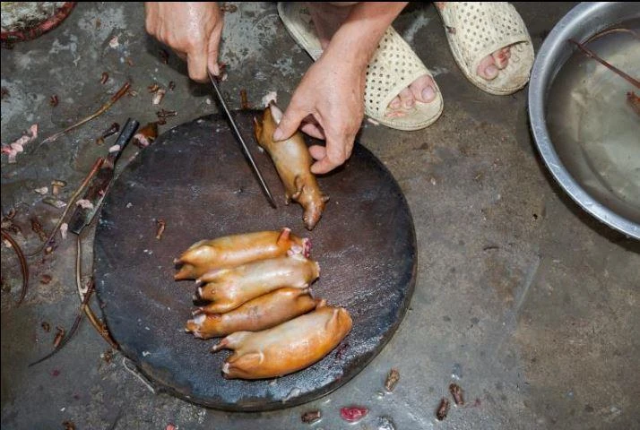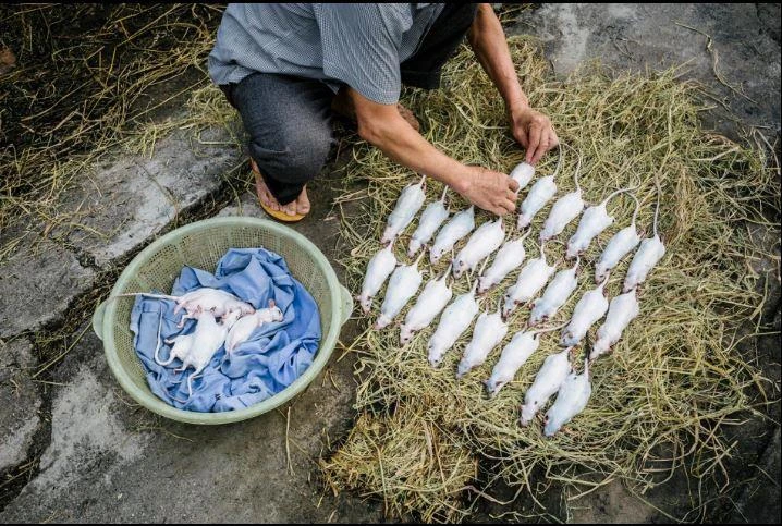 Chuột đem về được trụng qua nước sôi, lột da trước khi mang bán ở các chợ hoặc các quán nhậu. Ảnh: Ian Teh/National Geographic