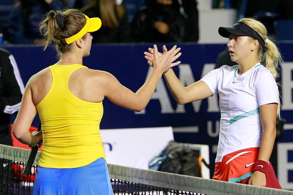 Svitolina bắt tay sau khi đánh bại đồi thủ người Nga - Anastasia Potapova. ẢNH: GETTY