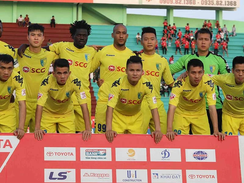 Nhà vô địch Việt Nam gắn với nhãn hàng Thái Lan. Ảnh: HUY PHẠM