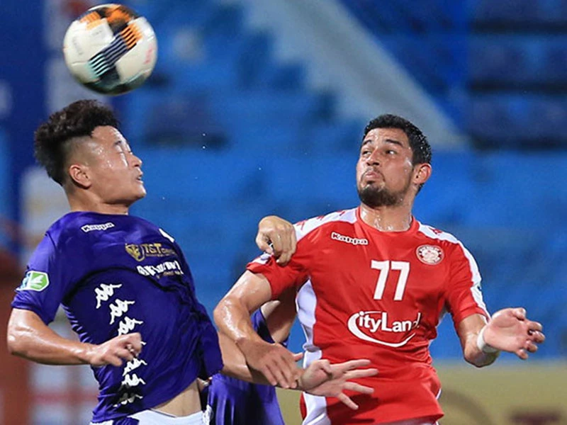 Ngoại binh CLB TP.HCM được mua rất cao nhưng lại vô hại trước các hậu vệ trẻ Hà Nội. Ảnh: CTV