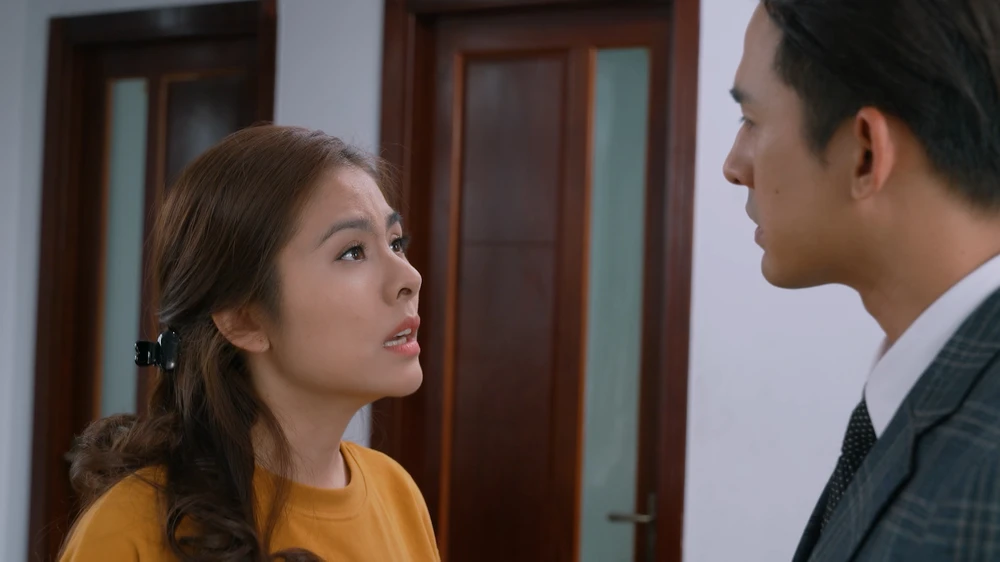 Khiêm vội vã xin lỗi Thanh Vân và rời đi để gặp đối tác. Ảnh: SEN VÀNG