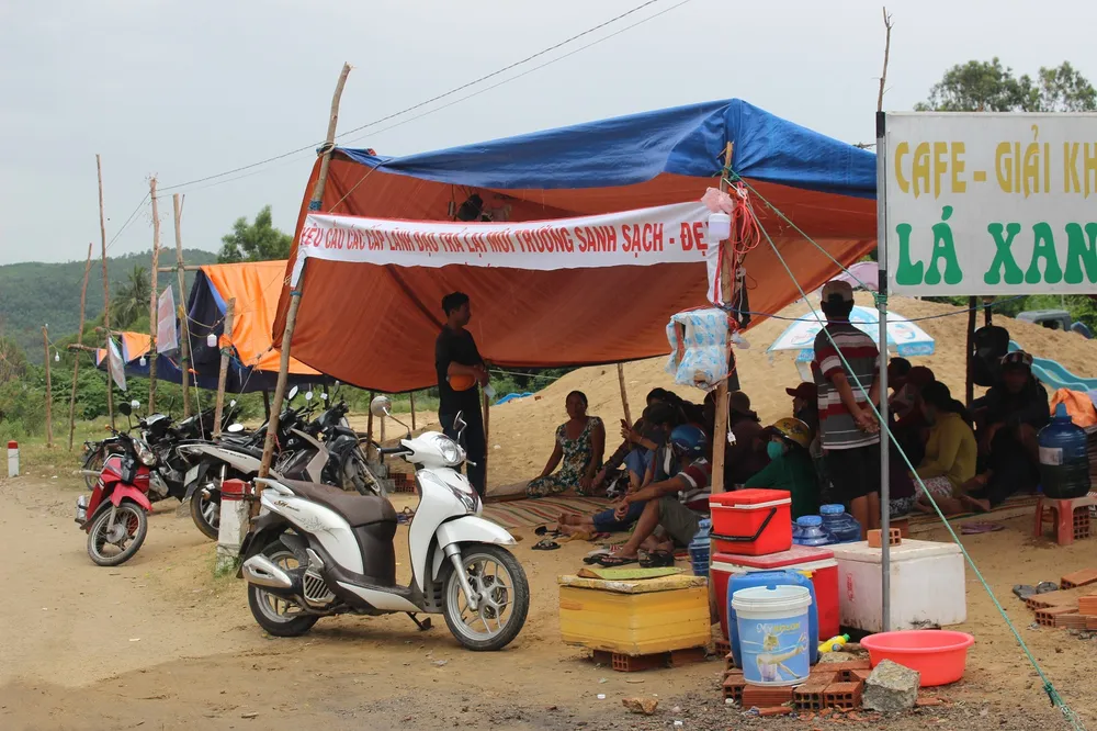 Người dân chặn xe vào nhà máy.
