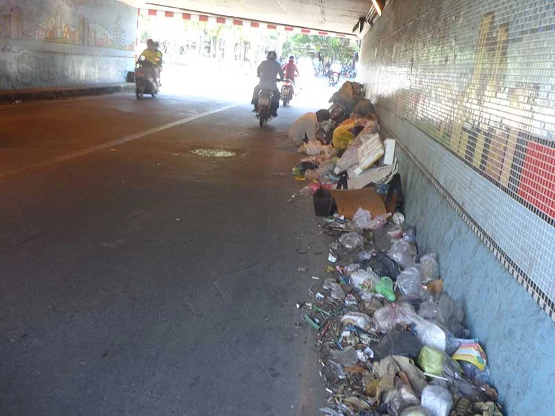 Kinh khủng nhất là đoạn chui dưới dạ cầu Kiệu bắc qua kênh Nhiêu Lộc trên đường Hoàng Sa, phường Tân Định, quận 1, TP.HCM trải dài rác trong nhiều ngày qua(ảnh). Những người ý thức kém đem rác bỏ nơi đây gây ô nhiễm, phản cảm và gây cản trở giao thông.