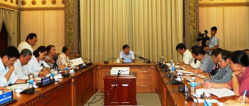 Chủ tịch UBND TP.HCM Nguyễn Thành Phong lắng nghe các bên giải trình. Ảnh: CTV