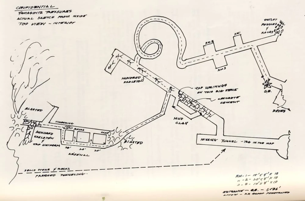 Một trong những hình vẽ được cho là bản đồ dẫn đến một kho báu của Yamashita