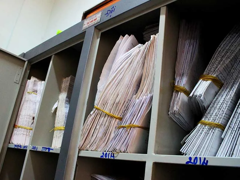 Ngày 9-5, có mặt tại Đội CSGT An Lạc (thuộc PC67), PV Pháp Luật TP.HCM ghi nhận các hồ sơ xử lý vi phạm, trong đó có GPLX bị tạm giữ được chất đầy kho lưu trữ hồ sơ. Những hồ sơ được xếp vào kho là hồ sơ đã quá thời hạn xử lý mà người vi phạm không đến làm thủ tục đóng phạt để nhận lại GPLX. Các hồ sơ này được chất đầy trong các tủ sắt cao hơn 2 m và được phân thành từng năm vi phạm. Trung tá Trương Trần Minh Tuấn, Đội trưởng Đội CSGT An Lạc, cho biết đội vẫn còn lưu giữ GPLX bị tạm giữ từ năm 2007 đến nay với số lượng lên đến hơn 21.000 GPLX. Hiện nay đội cũng đang rà soát để chuẩn bị tiêu hủy một số lượng GPLX đã quá 10 năm lưu giữ mà người dân không đến đóng phạt.