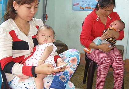Sau khi tiêm vaccine Quinvaxem tại trạm y tế phường, trẻ được theo dõi tại chỗ 30 phút. Ảnh: TRẦN NGỌC