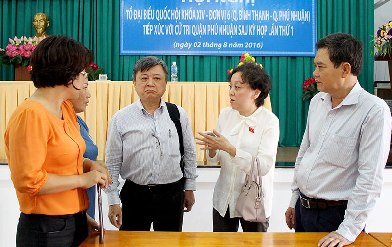 Các ĐBQH đơn vị 6 trao đổi với cử tri quận Phú Nhuận. Ảnh: LÊ THOA