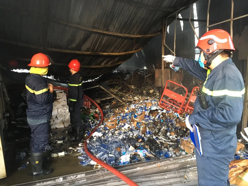 Ngọn lửa sau đó được dập tắt. Cảnh sát bảo vệ được 200 m2 nhà kho và nhà dân lân cận.
