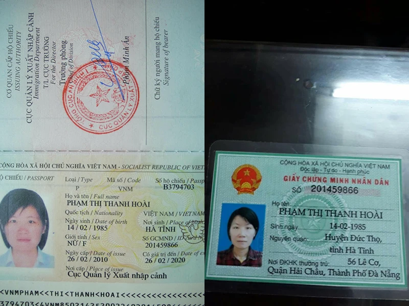 Phản ánh đến báo Pháp Luật TP.HCM, chị Phạm Thị Thanh Hoài, ngụ quận Hải Châu, TP Đà Nẵng, cho hay năm 2002, chị làm giấy chứng minh nhân dân (CMND) và ngày 28-3-2002 được Công an TP Đà Nẵng cấp giấy CMND số 201459866. Sau đó tám năm, năm 2010 chị Hoài làm thủ tục cấp passport trên cơ sở giấy CMND này và được Cục Quản lý xuất nhập cảnh cấp.