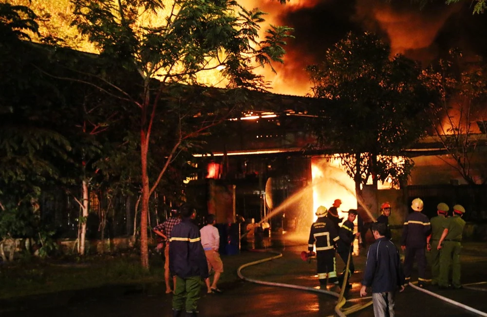 Theo thông tin ban đầu, khoảng 17 giờ 30 chiều nay, 29-11, nhiều người phát hiện lửa bùng phát tại kho sơn thuộc Công ty TNHH Hà Hưng trên đường số 8 (Khu công nghiệp Hòa Cầm, phường Hòa Thọ Tây, quận Cẩm Lệ, TP Đà Nẵng). Mọi người xách bình chữa cháy mini lao vào dập lửa nhưng bất thành.