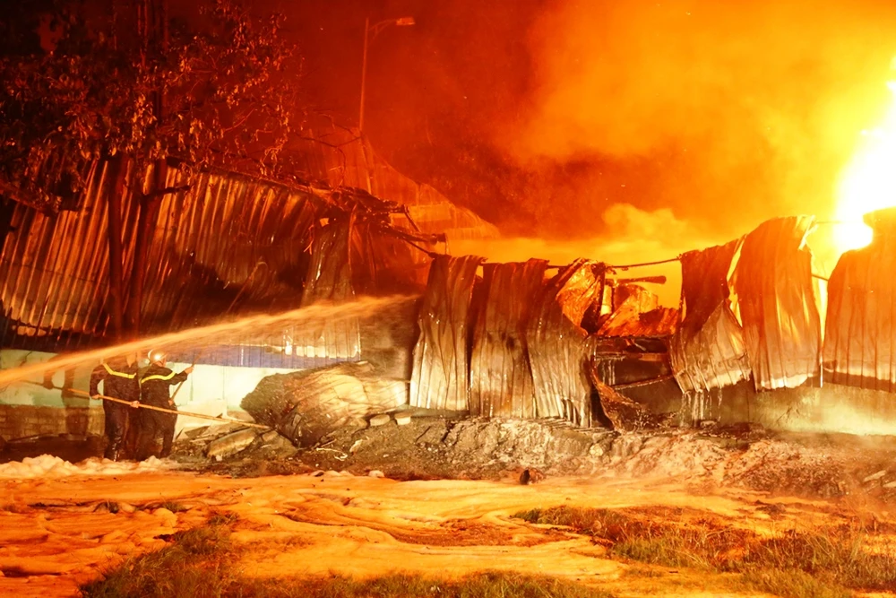 Đến 20 giờ cùng ngày, đám cháy vẫn chưa được dập tắt.