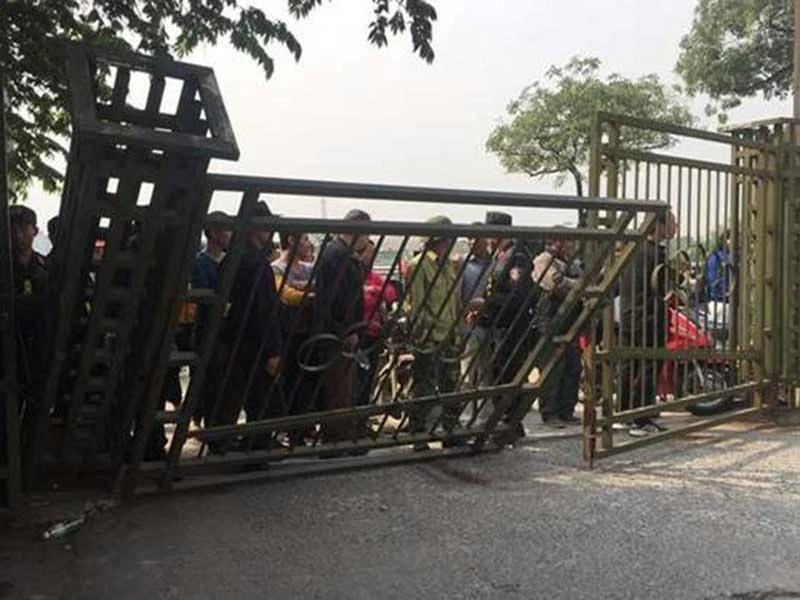 Cổng LĐBĐ Việt Nam bị người mua vé xô đổ.