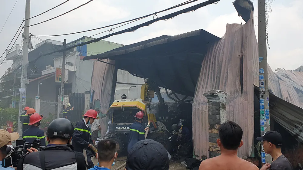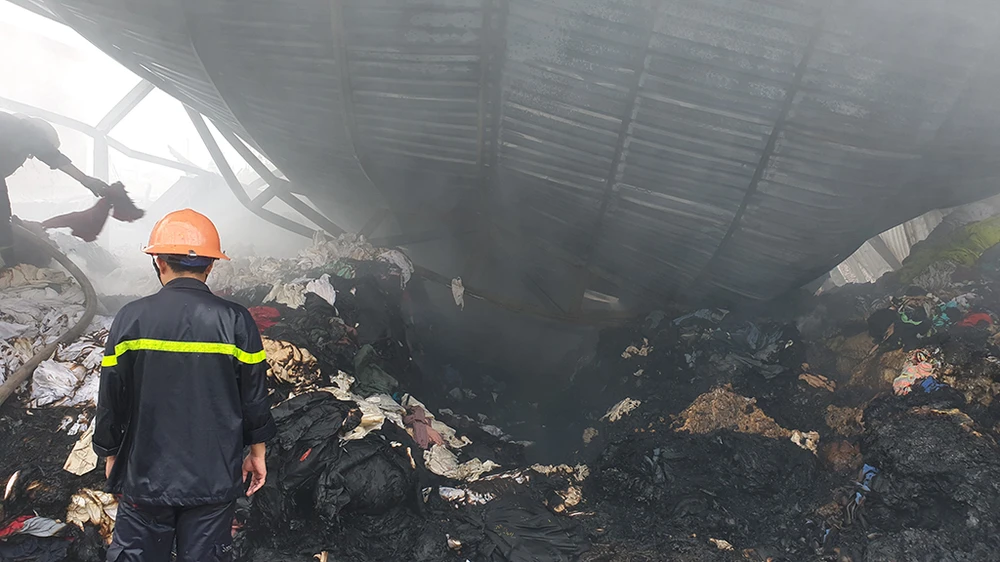 Đến chiều 19-12, lực lượng chức năng huyện Hóc Môn (TP.HCM) khám nghiệm hiện trường, điều tra vụ cháy xảy ra ở kho vải trên địa bàn.